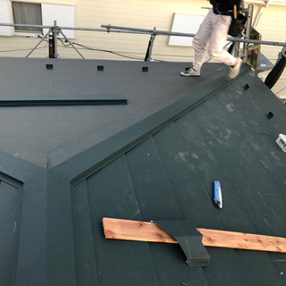 本日は屋根カバー工法でガルバニウム鋼板の仕上げに入ります。